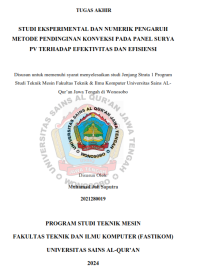 STUDI EKSPERIMENTAL DAN NUMERIK PENGARUH METODE PENDINGINAN KONVEKSI PADA PANEL SURYAPV TERHADAP EFEKTIVITAS DAN EFISIENSI
