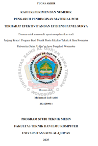 KAJI EKSPERIMEN DAN NUMERIK PENGARUH PENDINGINAN MATERIAL PCM TERHADAP EFEKTIVITAS DAN EFISIENSI PANEL SURYA