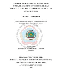 PENGARUH ABU DAUN JAGUNG SEBAGAI BAHAN TAMBAH DAN LIMBAH BETON SEBAGAI BAHAN PENGGANTI AGREGAT KASAR TERHADAP KUAT TEKAN BETON MUTU K-250
