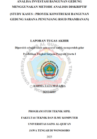 ANALISA INVESTASI BANGUNAN GEDUNG MENGGUNAKAN METODE ANALISIS DISKRIPTIF (STUDY KASUS : PROYEK KONSTRUKSI BANGUNAN GEDUNG SARANA PENUNJANG RSUD PRAMBANAN)