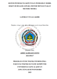 XMLPermasalahan utama dalam proses jual beli mobil seken di Dealer Jawara Motoradalah masih digunakannya sistem manual yang rawan kesalahan, kurang objektif, dan tidak efisien dalam menentukan mobil yang sesuai kebutuhan konsumen. Penelitian ini bertujuan untuk merancang dan membangun Sistem PendukungKeputusan (SPK) berbasis metode MOORA (Multi-Objective Optimization on theBasis of Ratio Analysis) guna membantu dealer dan konsumen dalam memilihmobil seken secara objektif dan terstruktur. Metode MOORA dipilih karena mampumenangani kriteria bertentangan seperti benefit dan cost secara efisien. Kriteriayang digunakan dalam sistem meliputi harga (cost), tahun kendaraan, kapasitasmesin, jenis bahan bakar, dan kelengkapan surat (semuanya benefit). Hasilpenelitian menunjukkan bahwa dari 13 alternatif mobil yang dianalisis, ToyotaFortuner (M5) memperoleh nilai tertinggi sebesar 0,2182, diikuti oleh Trail Blazer(M3) dengan 0,2002, dan Panther (M2) dengan 0,1739. Sistem berhasilmemberikan rekomendasi mobil seken terbaik berdasarkan kriteria yang ditetapkan, serta diuji sensitivitasnya untuk memastikan stabilitas keputusan terhadapperubahan bobot kriteria. Dengan adanya sistem ini, proses pemilihan mobil diDealer Jawara Motor menjadi lebih efisien, transparan, dan terukur, sertamendukung pengambilan keputusan yang akurat dan berbasis data.