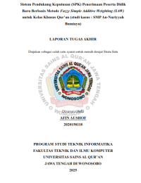 Sistem Pendukung Keputusan (SPK) Penerimaan Peserta Didik Baru Berbasis Metode Fuzzy Simple Additive Weighting (SAW) untuk Kelas Khusus Qur’an (studi kasus : SMP An-Nuriyyah Bumiayu)