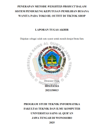 Kata Kunci : Sistem Pendukung Keputusan, Weighted Product, Pemilihan Busana, TikTok Shop, HL Outfit.
