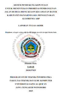 SISTEM PENDUKUNG KEPUTUSAN UNTUK MENENTUKAN PRIORITAS PEMBANGUNAN JALAN DI DESA DIENG KULON KECAMATAN BATUR KABUPATEN BANJARNEGARA MENGGUNAKAN ALGORITMA AHP