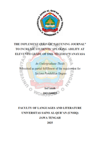 THE IMPLEMENTATION OF “LISTENING JOURNAL” TO INCREASE STUDENTS’ SPEAKING ABILITY AT ELEVENTH GRADE OF SMK NEGERI 1 WANAYASA