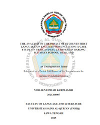 XMLThis study investigates the impact of Thai students' firstlanguage (L1) on their English pronunciation within the context ofEnglish as a Foreign Language (EFL) at Bakong Pitthaya Schoolin Thailand. The researcher used a descriptive qualitative methoddesign on a case study with Contrastive Analysis Theory onEnglish pronunciation. Recorded interviews and pronunciationtesting were the main techniques of data collection instruments. The subjects of this research were secondary grade students ofBakong Pitthaya School Pattani, Thailand. The results of this studyaimed to provide actionable recommendations for the teachers toenhance pronunciation instruction and improve studentpronunciation skill. This research contributes to the understandingof L1 influence on L2 pronunciation, offering insights that caninform teaching practices in similar EFL contexts.