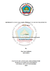 XMLThis research explores the representation of class conflict in DenisVilleneuve Dune (2024). This research aims to analyze how class conflict isdepicted and what impact it has on the social structure in the Arrakis fictionaluniverse.This research uses qualitative methods and utilizes Marxist theory andRalf Dahrendorf's conflict theory.The research examines scenes and dialog in the movie Dune that reflectthe tension between the upper class and the lower class.The findings show that the movie depicts a stark divide between the rulingclass, such as House Harkonnen and the Emperor, and the oppressed class ofFremen. The research found that class conflict led to solidarity among the Fremenpeople and contributed to significant social change.The movie serves as a powerful parable to illustrate real-world socialinequality and the dynamics of resistance.