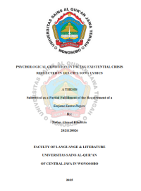 XMLUnderstanding how music conveys complex psychological experiencesrequires both literary and semiotic interpretation. This thesis analyzes theexistential crisis reflected in the lyrics of the band Gulch, particularly from theiralbums Burning Desire to Draw Last Breath and Impenetrable CerebralFortress. The analysis applies Roland Barthes’ theory of denotation andconnotation to explore how literal (denotative) and symbolic (connotative)meanings in the lyrics reflect deep psychological turmoil and existentialanxiety. This research uses a qualitative descriptive method. The primary dataconsist of selected song lyrics by Gulch, and the theory of two orders ofsignification by Roland Barthes is used to decode the embedded meaningswithin the texts. This study also considers the emotional states and existentialconflicts expressed through the lyrical characters. The findings reveal that Gulch’s song lyrics convey profoundpsychological conditions such as alienation, suicidal ideation, inner conflict, and loss of meaning. Through Barthes’ semiotic lens, these lyrics serve asmetaphors for existential suffering and the modern individual’s struggle to findidentity and purpose amidst chaos. The violent and surreal imagery, whileintense, becomes a literary medium through which existential crises areexpressed and interpreted.