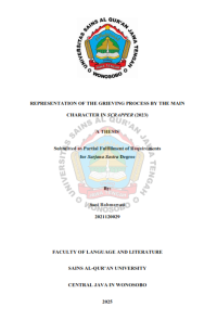 XMLThis research aims to analyze the grieving process experienced by themain character, Georgie, in the film Scrapper (2023), following the death of hermother. The study is guided by Elisabeth Kübler-Ross’s Five Stages of Grieftheory to examine how Georgie moves through denial, anger, bargaining, depression, and acceptance. In addition, Ainsworth’s Attachment Theory isapplied to understand the evolving relationship between Georgie and herestranged father, Jason, and how this bond contributes to her emotional healing. Freud’sstructural model of the psyche id, ego, and superego is also used toexplore Georgie’s unconscious drives and defense mechanisms in her copingbehaviors. The research employs a qualitative descriptive method withpsychological criticism as the approach. The findings reveal that Georgieundergoes a nonlinear grieving process. Initially, she exhibits denial byconstructing false narratives and avoiding her mother’s death. She shows angerthrough defensive behavior and emotional outbursts, and engages in bargainingthrough symbolic actions and hopeful fantasies. As her grief deepens, sheisolates herself and demonstrates signs of depression, often replaying videos ofher mother. Eventually, through the reestablishment of emotional attachmentwith her father, Georgie begins to open up and accept her loss. Throughconsistent emotional presence and shared experiences, Georgie's relationshipwith her father gradually changed from mistrust to secure attachment, whichplayed a significant role in her emotional recovery. The study concludes that thecombination of grief stages, attachment repair, and internal conflict reflects acomplex but human grieving journey in childhood.