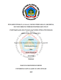 PENGARUH TINGKAT LEVERAGE, UKURAN PERUSAHAAN, LIKUIDITAS, DAN SOLVABILITAS TERHADAP KINERJA KEUANGAN ( Studi Empiris pada sektor Farmasi yang Terdaftar di Bursa Efek Indonesia selama Periode 2019 Sampai 2023 )