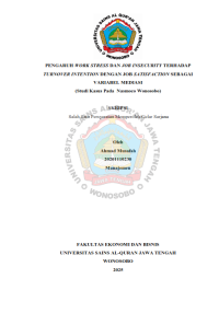 PENGARUH WORK STRESS DAN JOB INSECURITY TERHADAP TURNOVER INTENTION DENGAN JOB SATISFACTION SEBAGAI VARIABEL MEDIASI