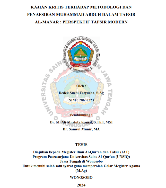 KAJIAN KRITIS TERHADAP METODOLOGI DAN PENAFSIRAN MUHAMMAD ABDUH DALAM TAFSIRAL-MANAR : PERSPEKTIF TAFSIR MODERN