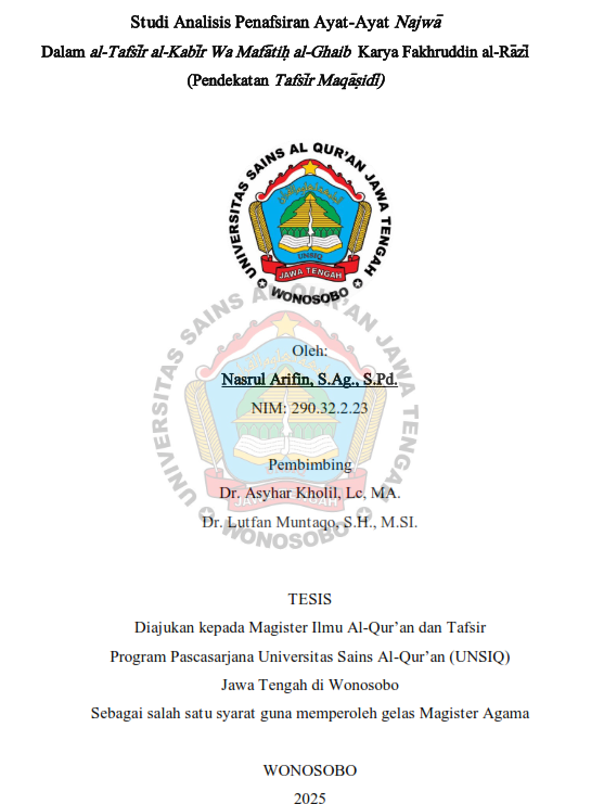 STUDI ANALISIS PENAFSIRAN AYAT-AYAT NAJWA DALAM AL-TAFSIR AL-KABIR WA MAFA TIH AL-GHAIB KARYA FAKHRUDDIN AL-RAZI (PENDEKATAN TAFSIR MAQASIDI)