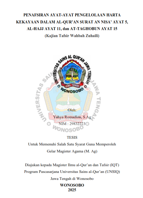 PENAFSIRAN AYAT-AYAT PENGELOLAAN HARTA KEKAYAAN DALAM AL-QUR’AN SURAT AN NISA’ AYAT 5, AL-HAJJ AYAT 11, dan AT-TAGHOBUN AYAT 15 (KAJIAN TAFSIR WAHBAH ZUHAILI)